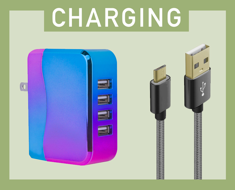 Small and powerful, our car and home chargers come in a variety of AMPS. With multiple USB ports you can charge a few devices simultaneously.